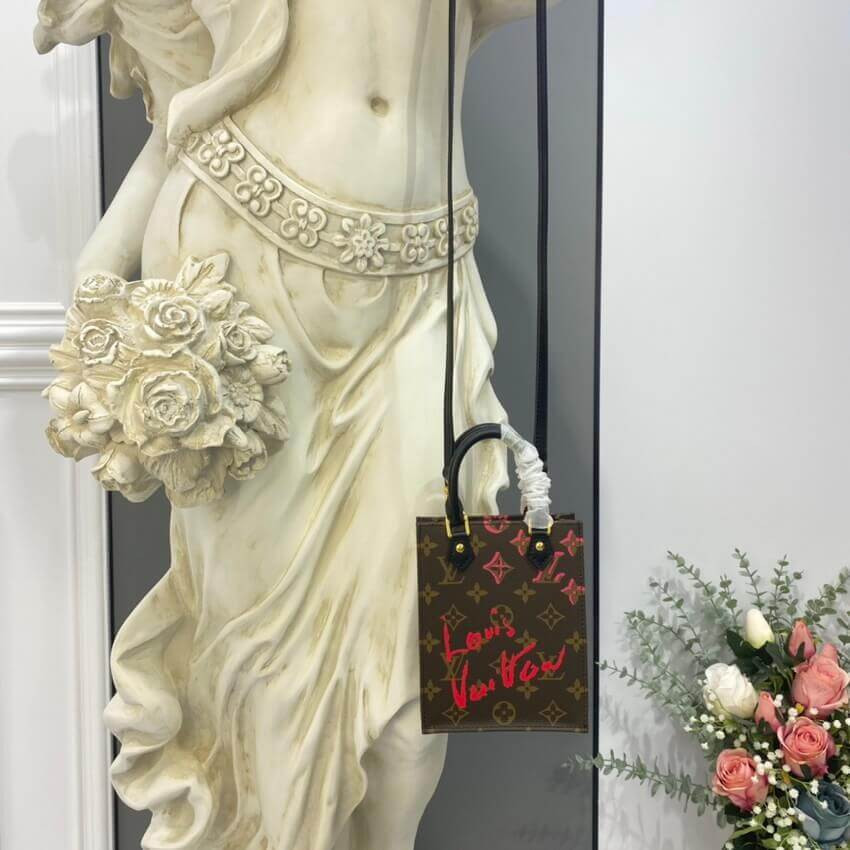 This edition of the Petit Sac Plat was created especially for the romantic Fall in Love capsule. Made from emblematic Monogram canvas, it displays a Louis Vuitton signature drawn in bold lipstick red. A mini model of the Maison’s classic Sac Plat, this playful version has ample room for daily essentials, including a smartphone, cards – and a lipstick, of course.