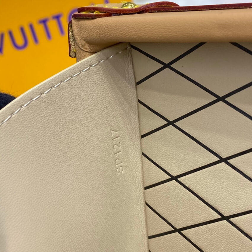 The Petite Malle handbag takes on a neo-vintage aspect in new Jacquard Since 1854 textile. The pattern of woven Monogram Flowers, LV Initials, and 1854s was seen across the whole Fall-Winter 2020 Collection. The number 1854 refers to the year Louis Vuitton founded his trunk-making business. The Petite Malle travels easily from day to evening.