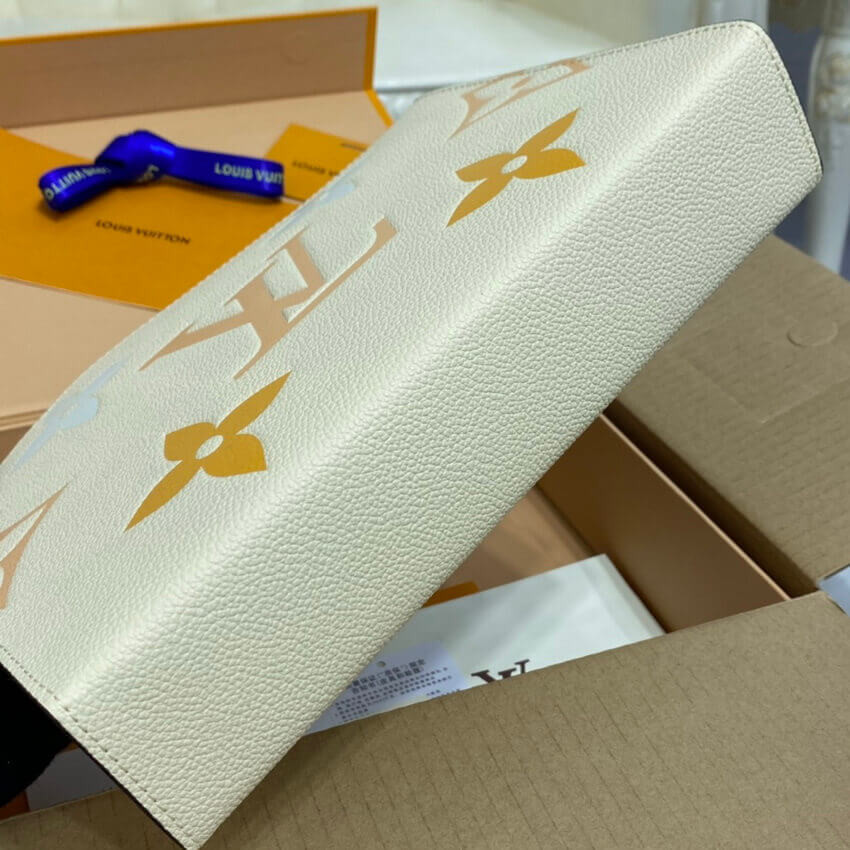 The Toiletry Pouch 26 is made from supple leather embossed with a Monogram motif. The subtle cream color of the leather is complemented by the Monogram Blossoms and LVs printed in shades of saffron. A practical travel companion, this spacious pouch boasts a washable lining and a wide opening for easy access to what’s inside.