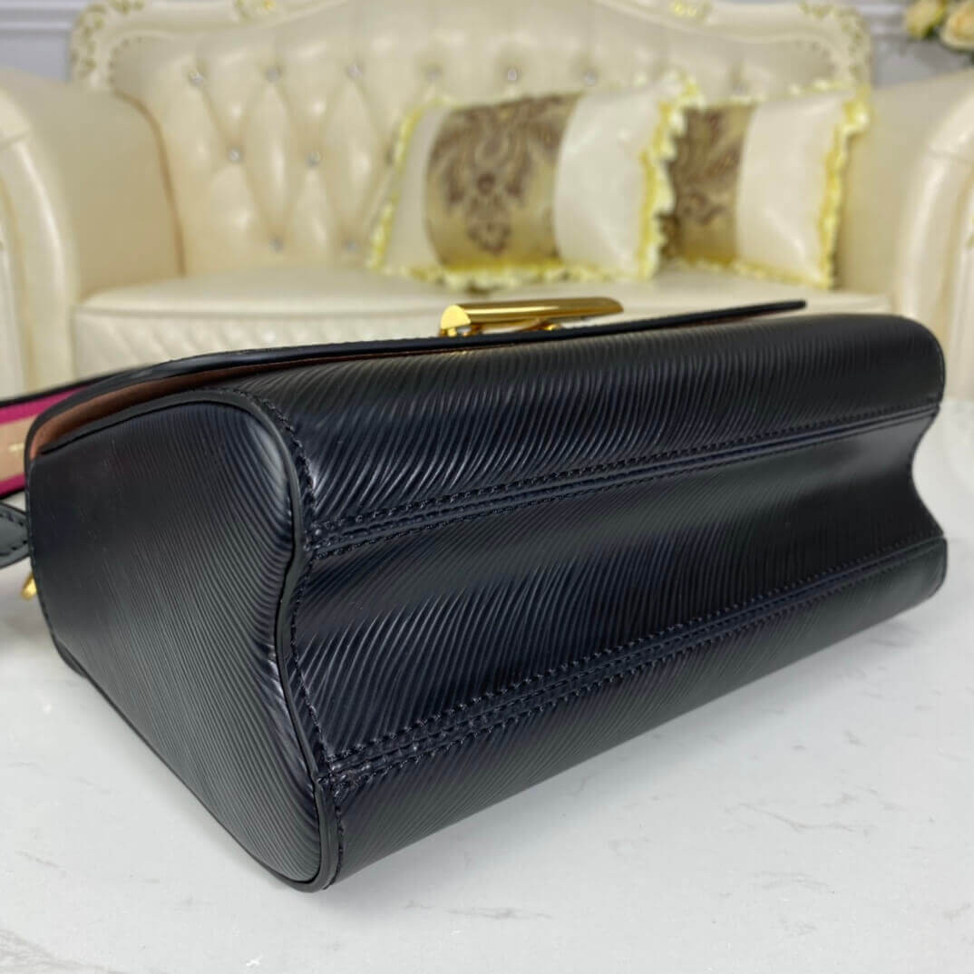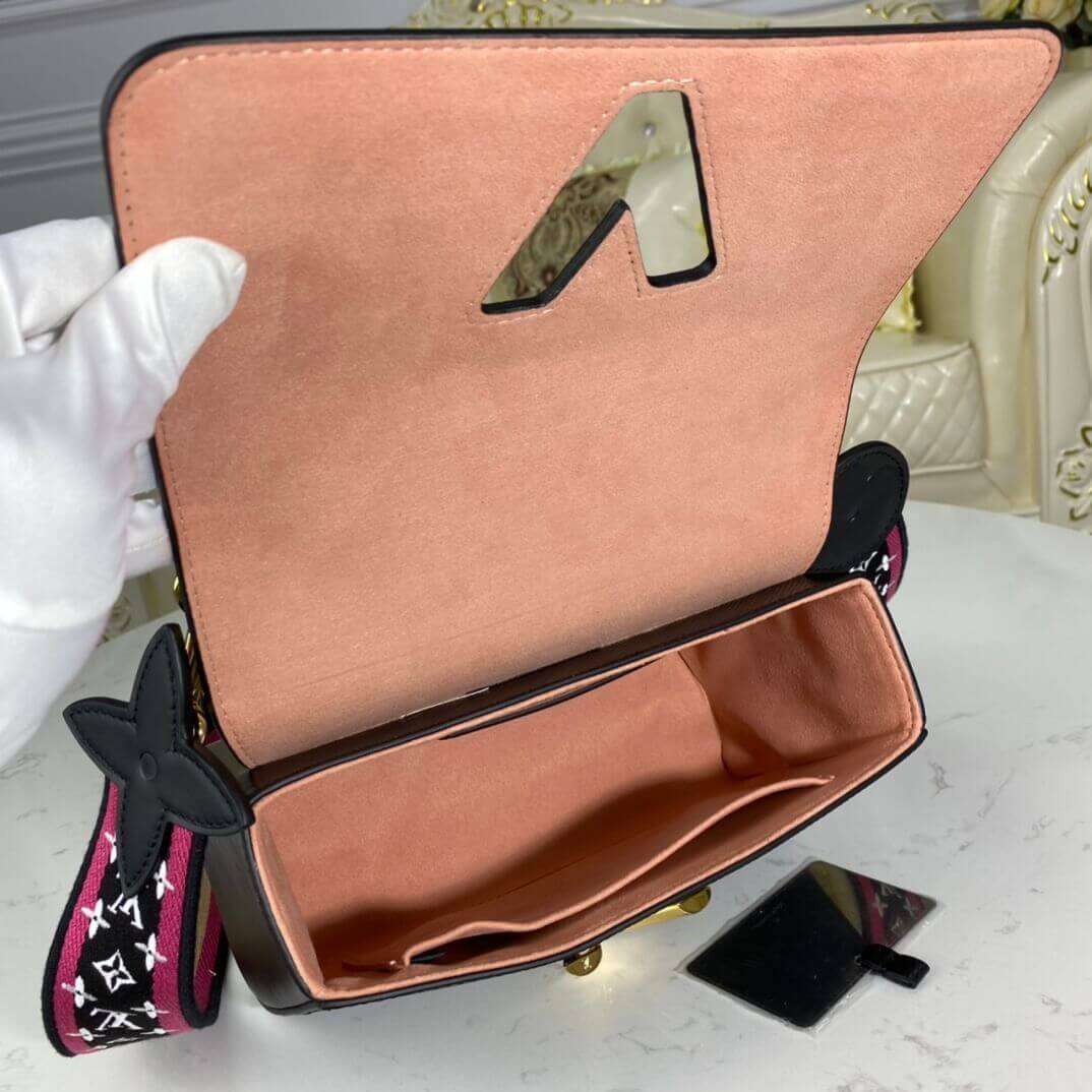The wide embroidered strap brings a fashionably bold feel to this Twist PM in Galet Epi leather. With its leather Monogram Blossom at the base, a Mini Monogram motif embroidered on one side and “Louis Vuitton” on the other, the strap gives a whole new aspect to a classic bag.