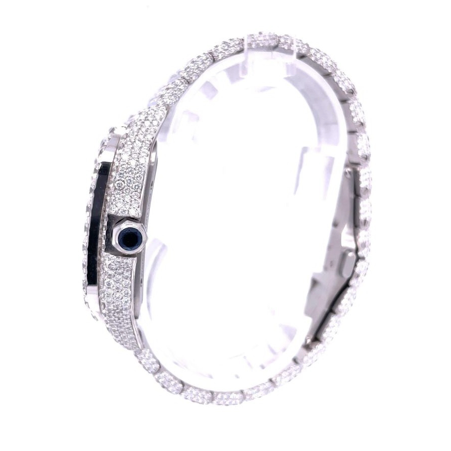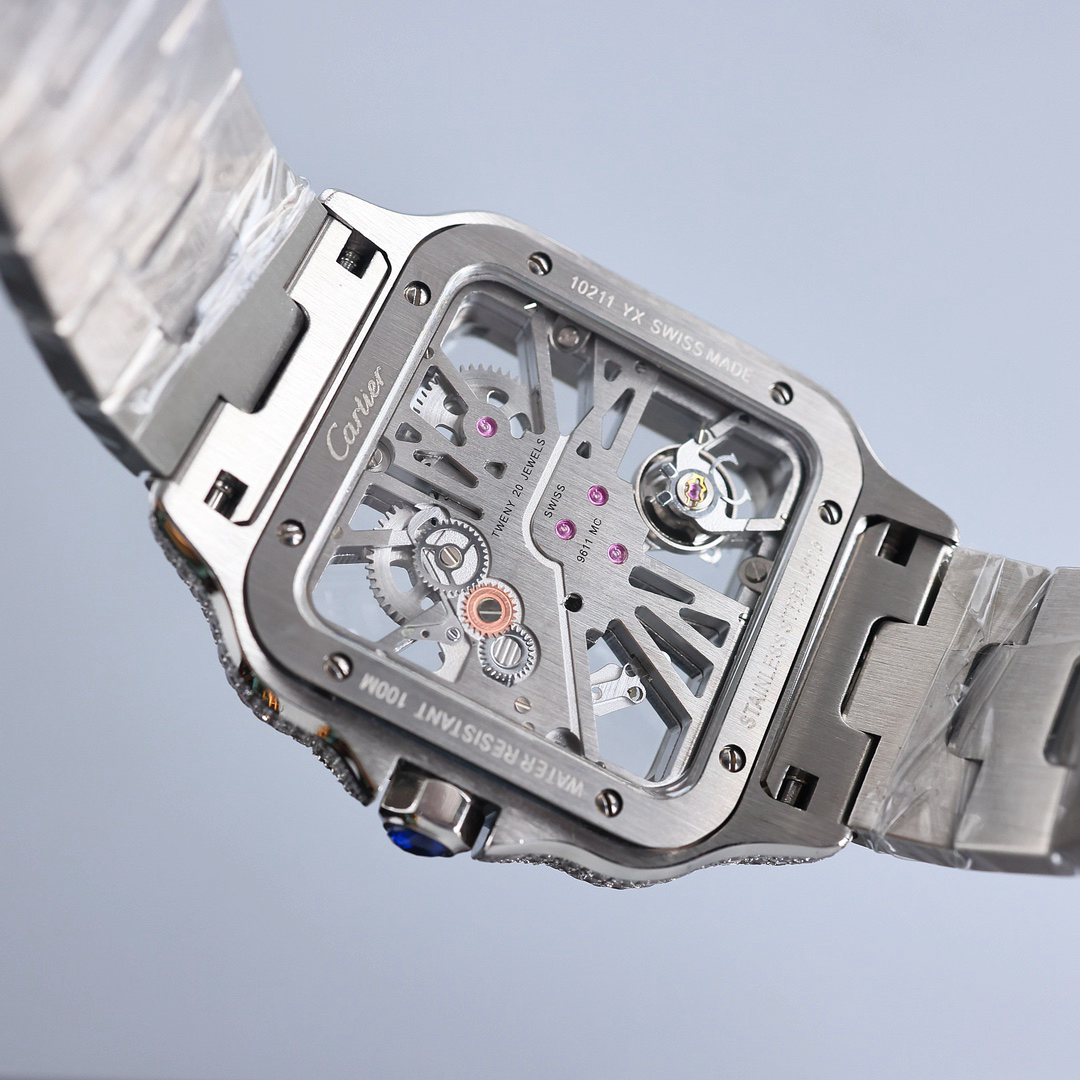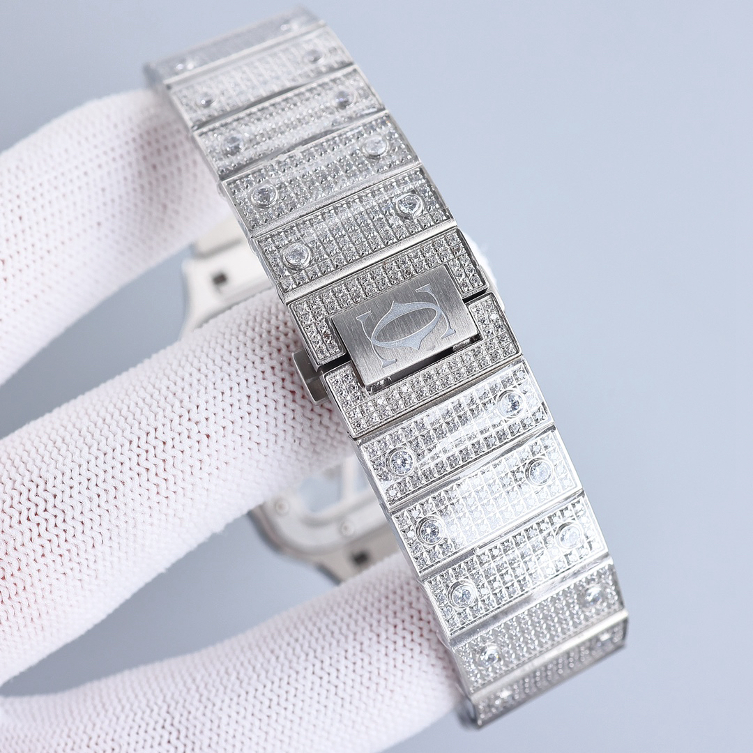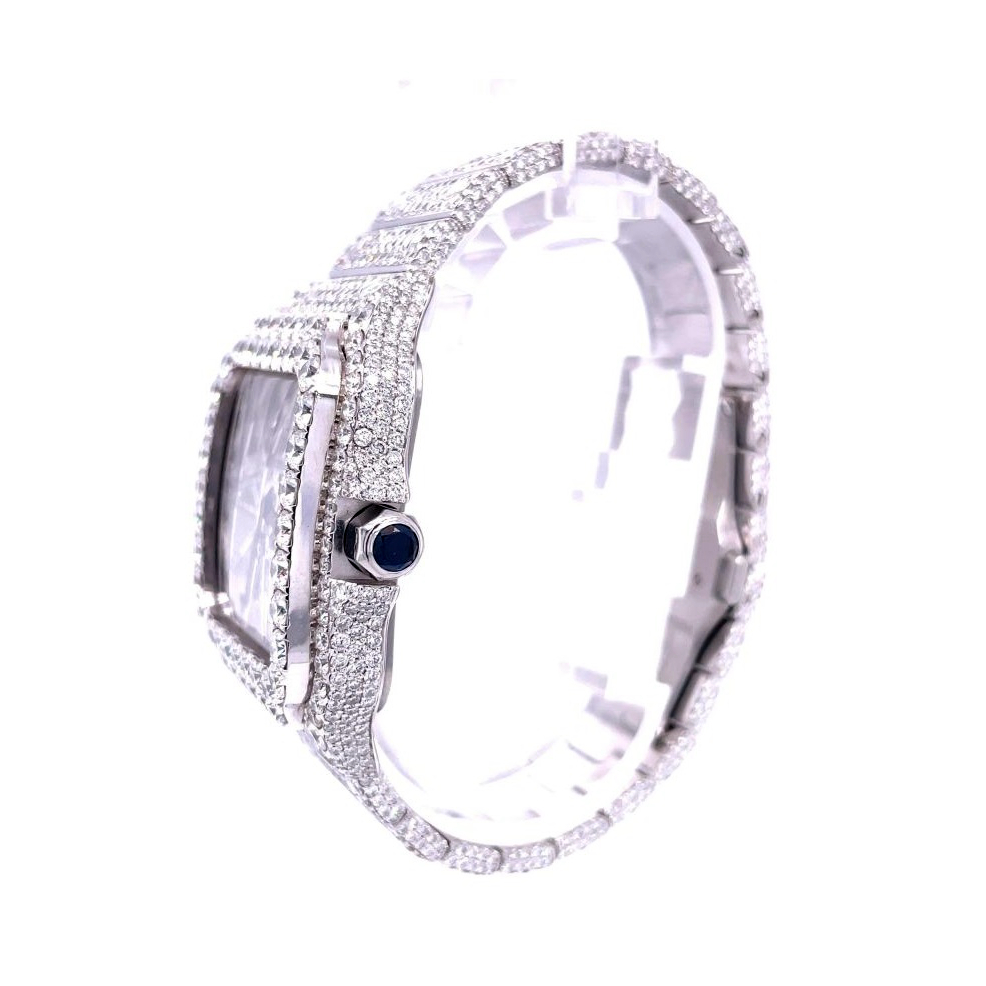We use Rhinestone or Zircon for our iced out watches, and all our diamond watches feature high-quality movement with a super clone standard. If you prefer real moissanite, the watch will cost $3000-4000 and will pass testing with cert.
