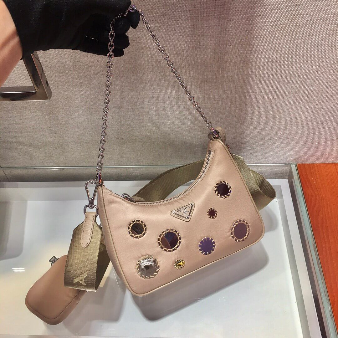 - Detachable Prada Re-edition 2005 Saffiano leather name tag with keychain