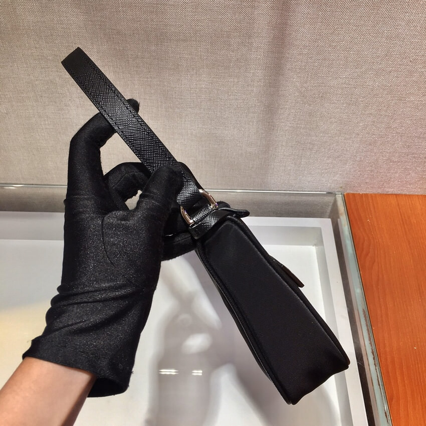 Practical and feminine, the nylon mini bag is decorated with iconic Saffiano leather trim. It features a contemporary mix of materials.