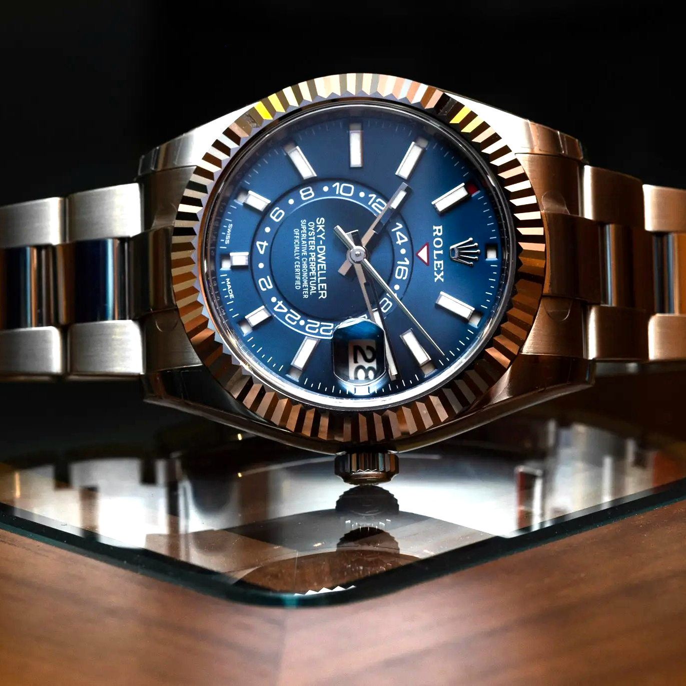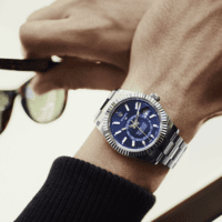 This distinctive watch is characterized by its second time zone display on an off-centre disc on the dial. Furthermore, its innovative system for setting the functions, using the rotatable Ring Command bezel, is unique to Rolex.