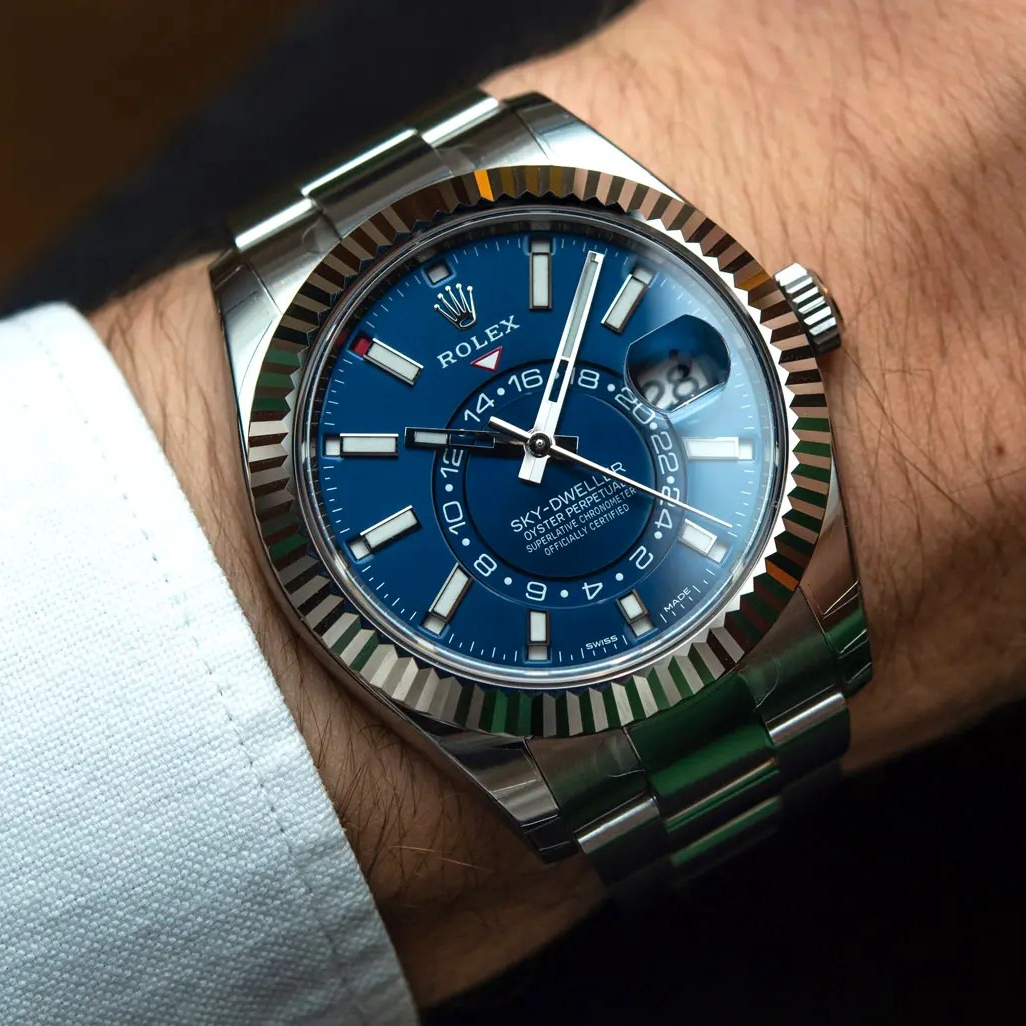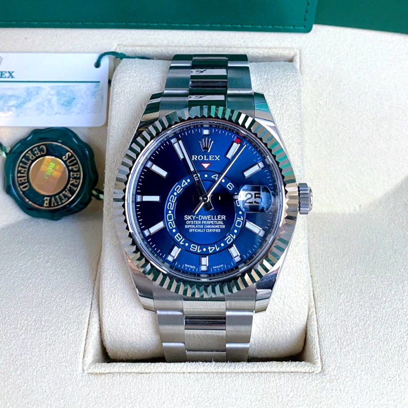 | Model Name: | Rolex Sky-Dweller Blue Dial Steel White Gold Mens Watch 326934 Unworn |
