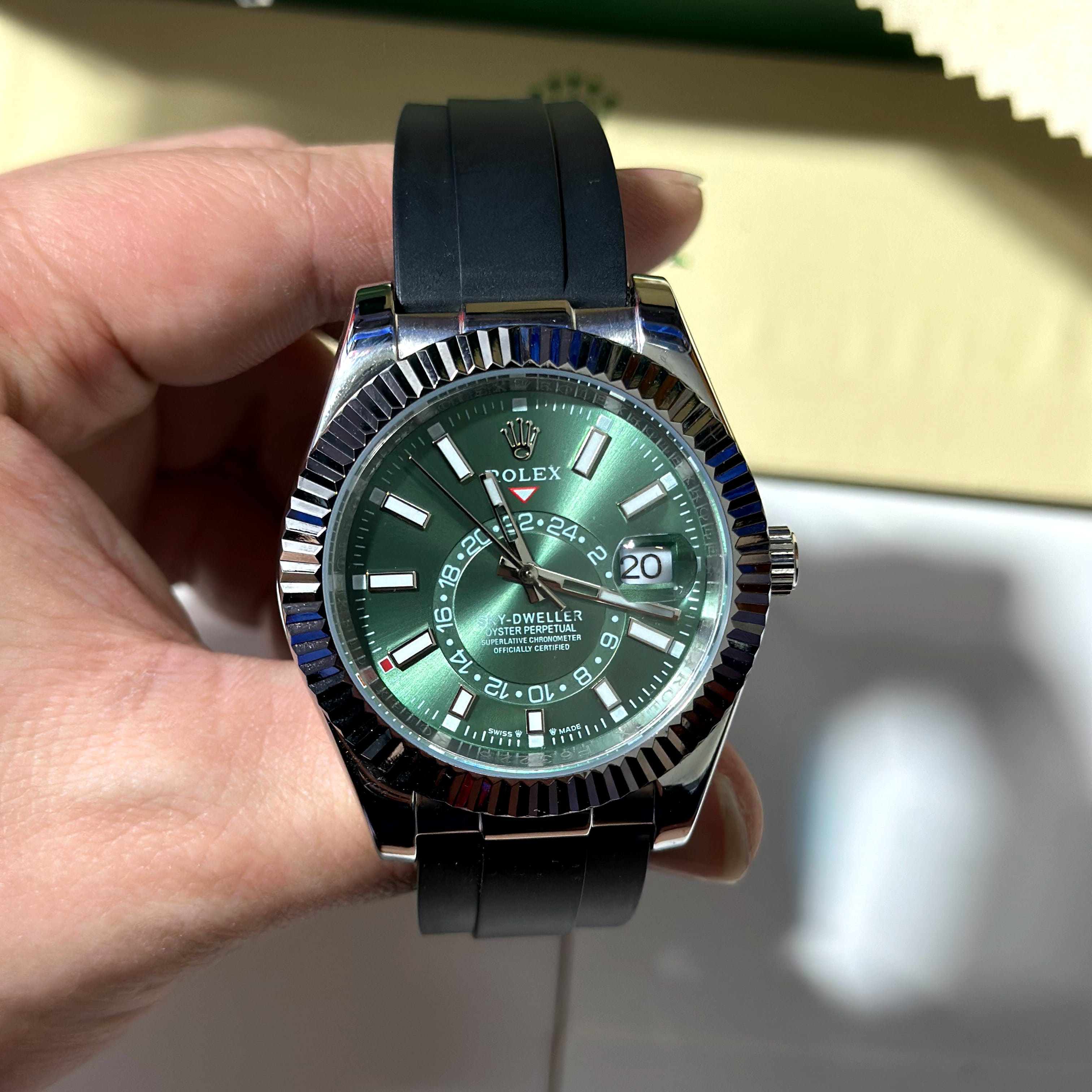 Rolex Sky Dweller 18ct Silver 42mm Green Dial 326235