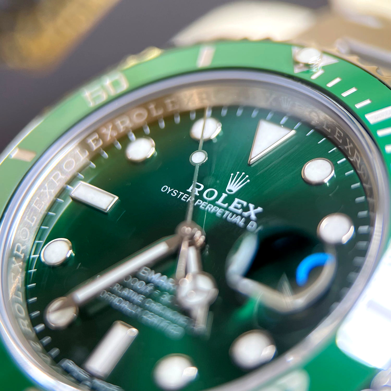 The 2020 Rolex Kermit Submariner hit the market in August and is quickly becoming one of the most sought-after luxury watches. The green bezel that accompanied the 5-digit model is now presented in tough Cerachrom. Additionally, the black Maxi dial is now filled with stunning Chromalight. The 2020 Submariner also received a larger 41mm case and is equipped with Rolex's calibre 3235 Perpetual movement, the successor to the long-running calibre 3135. As a traditional Submariner watch, the ref. 126610 also offers water-resistance up to 1,000 feet and is equipped with a scratch-resistant sapphire crystal and a uni-directional bezel mounting. You can wear this Submariner anywhere you roam without worry.