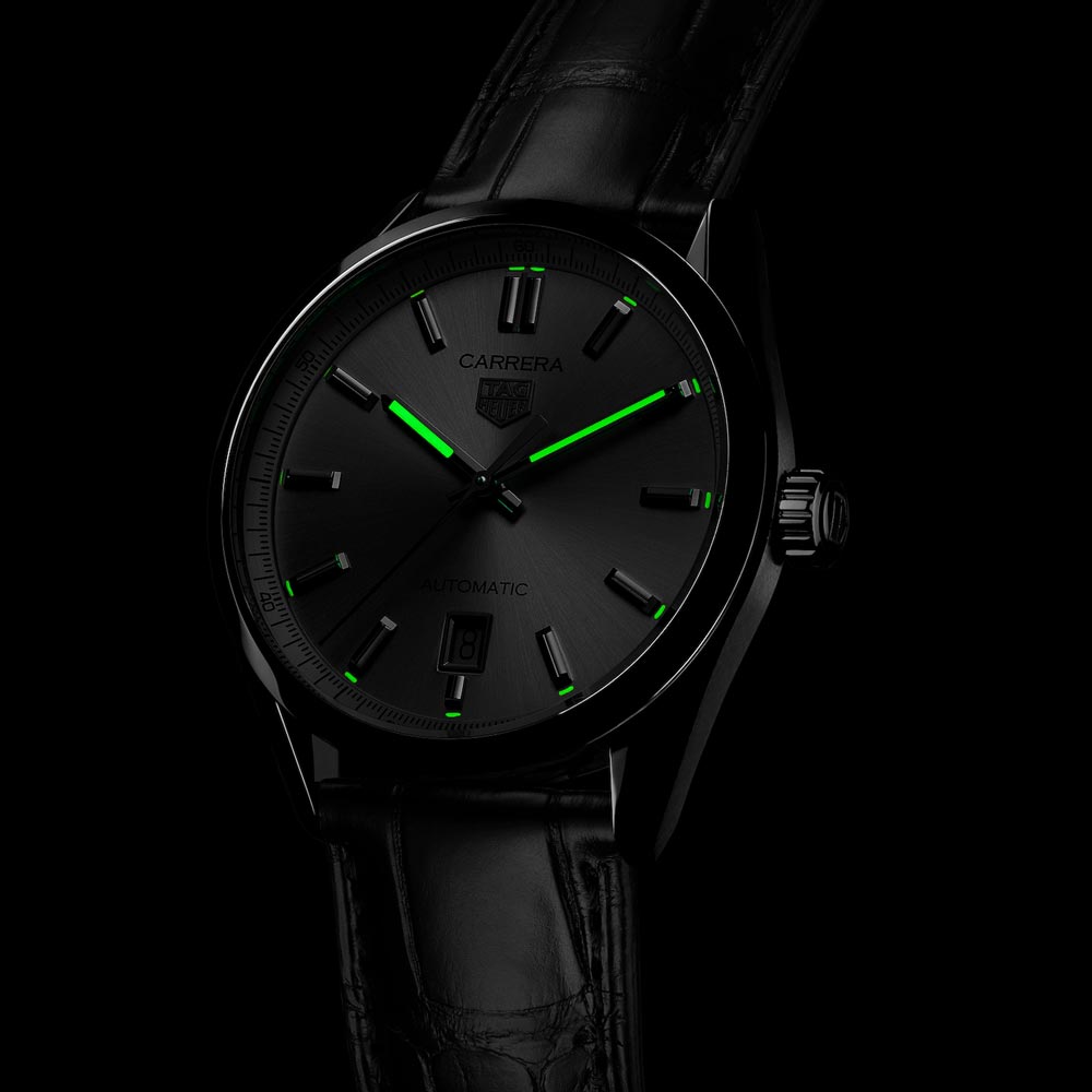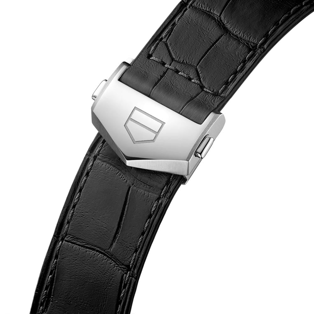 Bedecked in silver hues. the TAG Heuer Carrera flaunts its iconic signature design. combining timekeeping exactitude with standout aesthetics. Adorned by the radiant sunray-brushed dial. the hands. hour markers. and an applied TAG Heuer shield are presented in luxe rhodium plate.