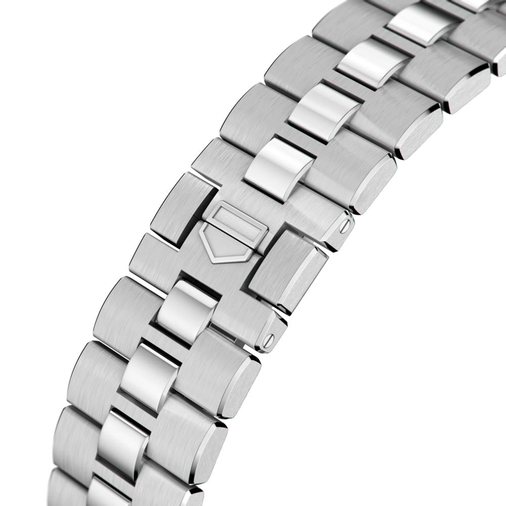 This Monaco chronograph features a 39mm square case with an elegant black sunray-brushed dial. punctuated by a red permanent seconds indicator. The Monaco Collection is celebrated with the reintroduction of traditional colors. including the in-house manufactured movement Heuer 02.