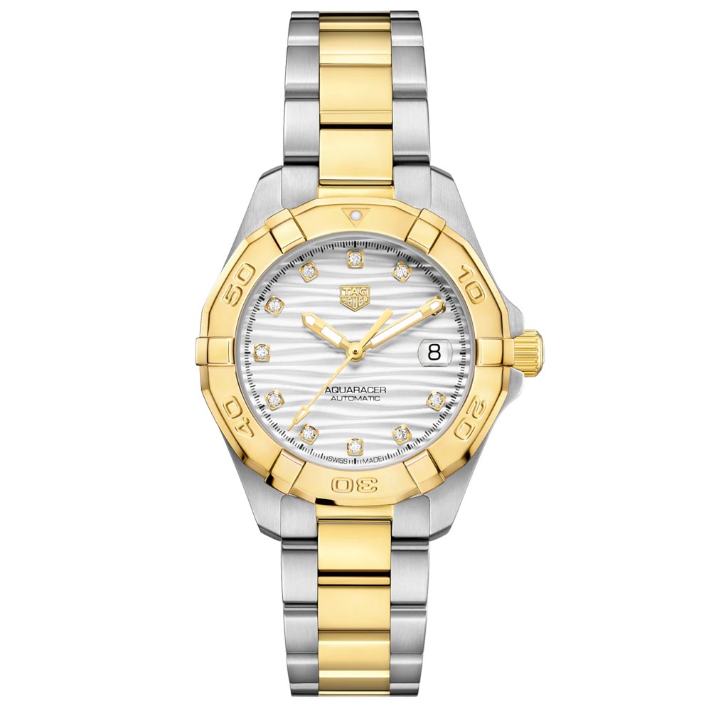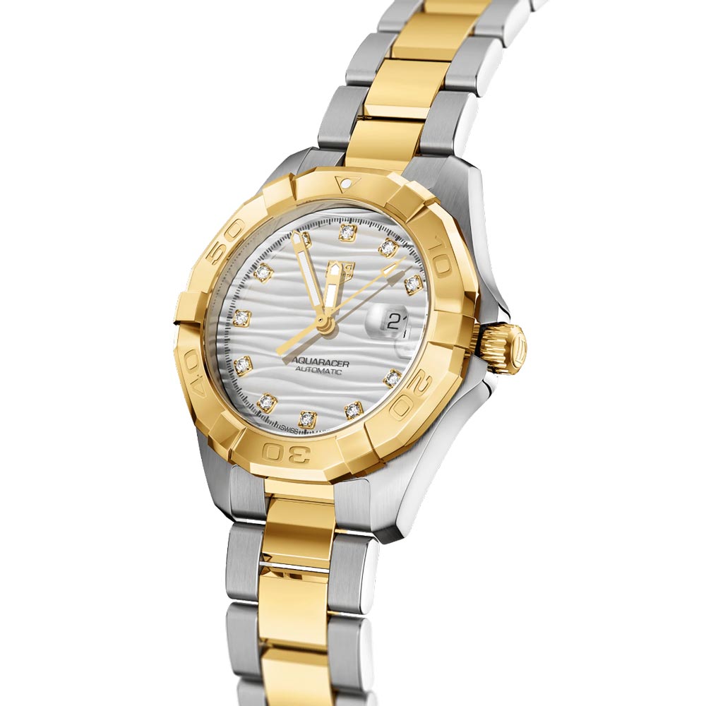 TAG Heuer Aquaracer 32mm Grey Dial 18ct Gold Plated Steel Diamond Automatic Ladies Watch WBD2321 BB0320