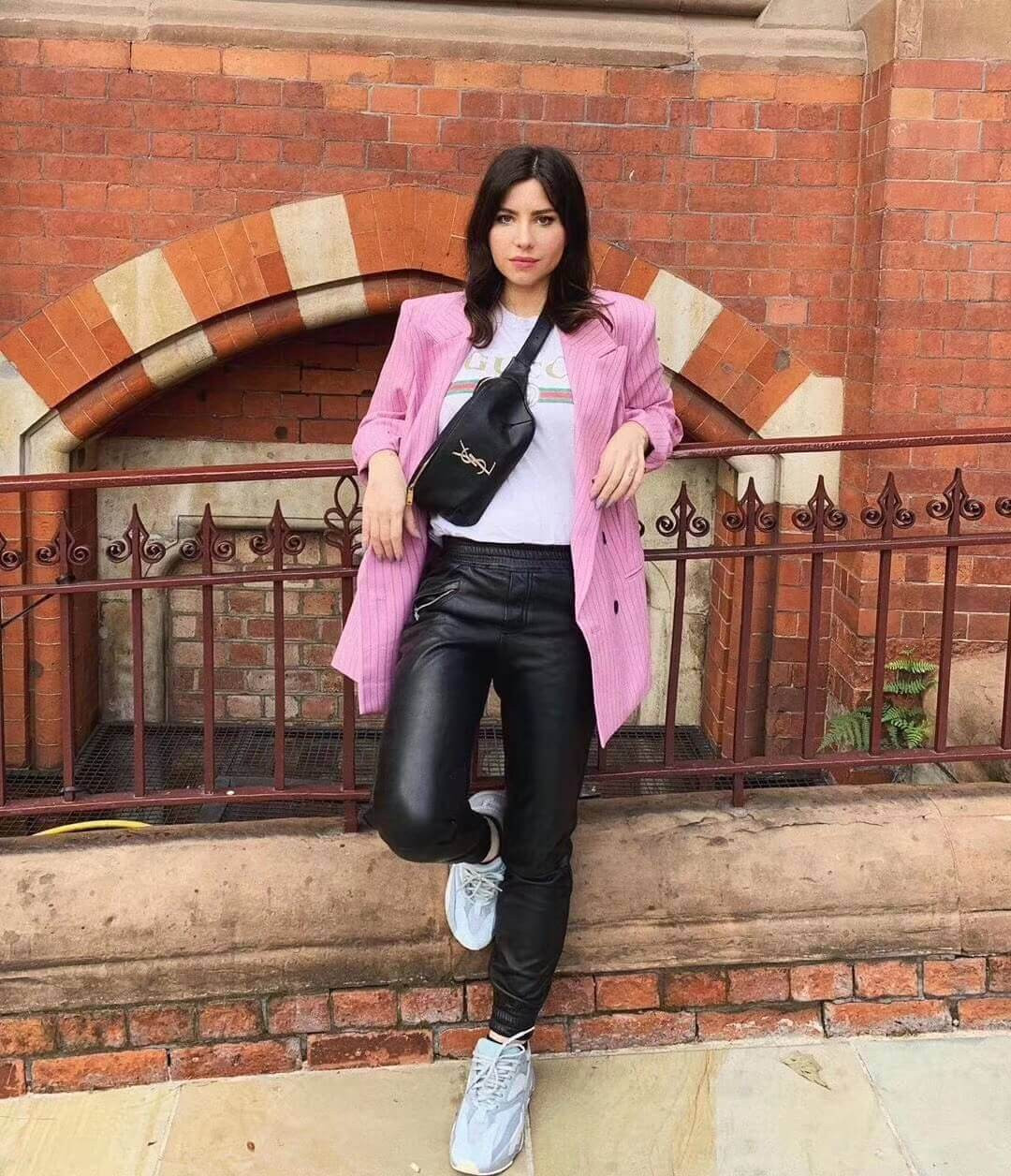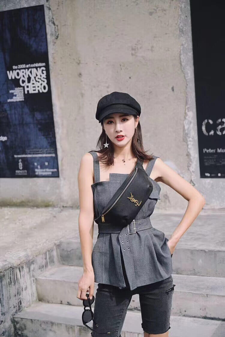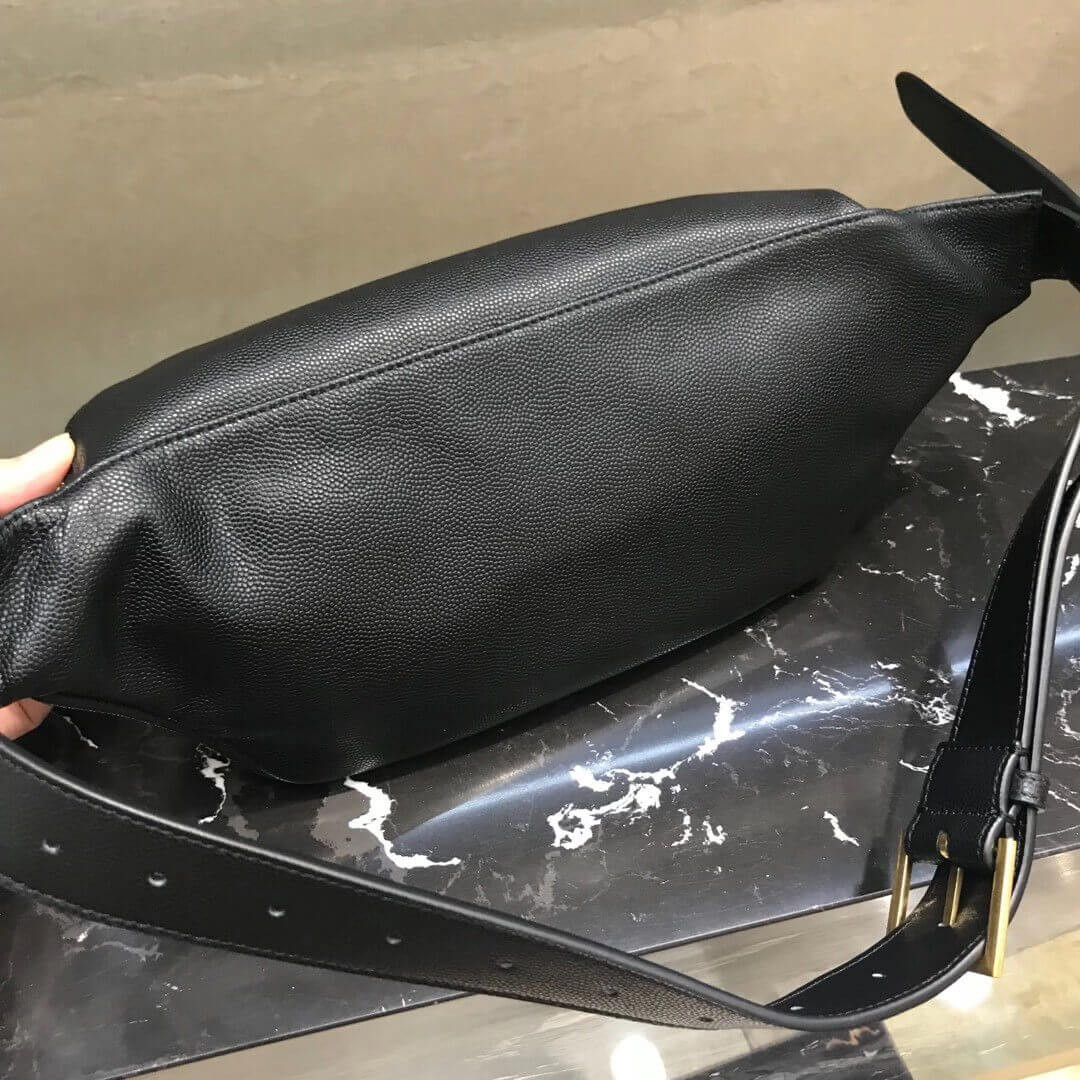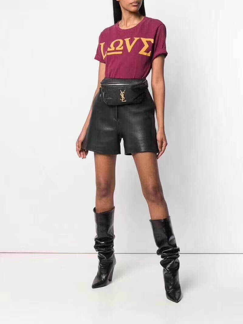Zippered belt bag decorated with ysl initials and featuring an adjustable belt.