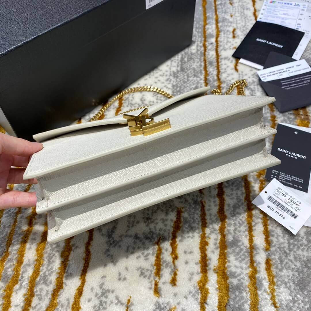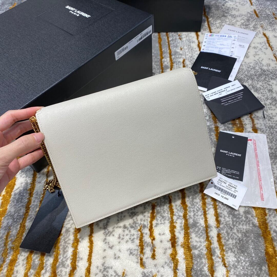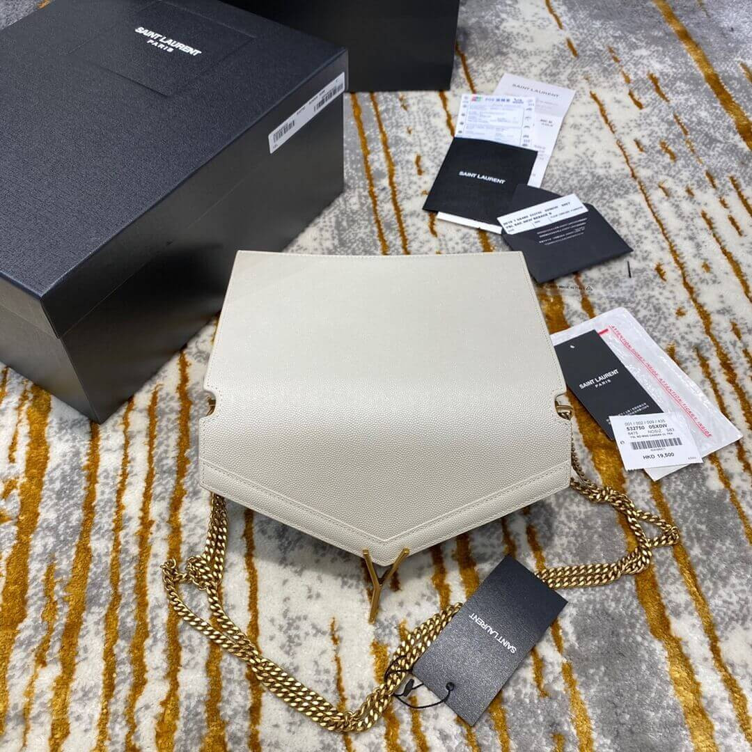 Saint laurent monogram bag with a flap on front and studs on the sides, two compartments, a flat pocket in front with a pivoting ysl fastening and a double curb chain.
