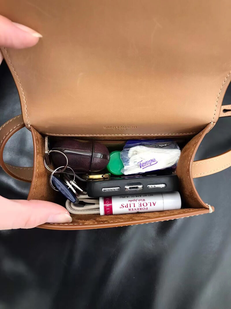 Kaia Satchel With Front Flap And Magnetic Snap Closure, Decorated With Interlaced Ysl Initials, Featuring An Adjustable Shoulder Strap